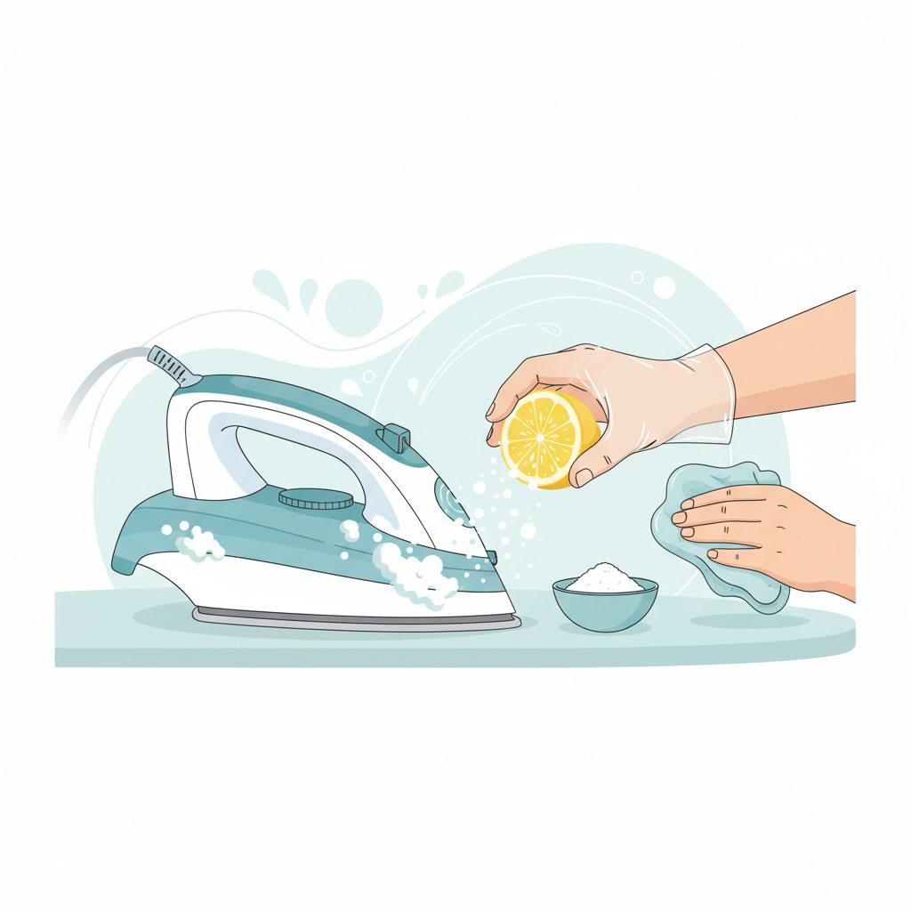 Для нержавіючої сталі підійде паста з харчової соди й води (м’яка кашка без крупинок). Нанесіть тонкий шар, зробіть декілька кругових рухів без натиску, відразу зніміть вологою серветкою й витріть насухо. Для кераміки, емалі та антипригарних покриттів таку пасту краще не застосовувати. Якщо плями стійкі, допоможе перекис водню: нанесіть на мікрофібру й протріть теплу підошву, уникаючи заливання у отвори, потім протріть чистою водою. Після кожного очищення зробіть кілька ковзань по чистій бавовняній тканині, щоб прибрати залишки вологи та миючих речовин.