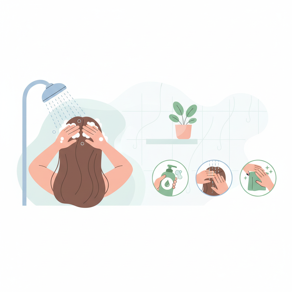Температура має значення. Гаряча вода посилює жирність у перспективі, а холодна не змиває шкірний себум. Оберіть теплу воду, близьку до температури тіла. Це допоможе розчинити забруднення, не провокуючи пересушення. Тримайте під рукою шампунь і кондиціонер, а також рушник з м’якого бавовняного вафельного полотна або чисту бавовняну футболку для сушіння без зайвого тертя.
